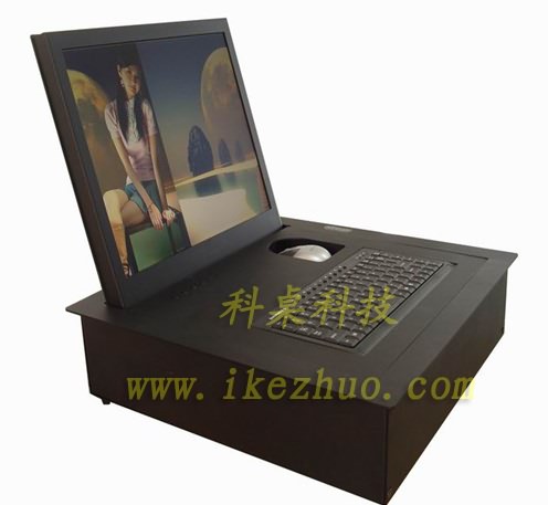 液晶显示器翻转器主要应用于各种高档会议厅,交易厅,高级多媒体网络系统,办公家私场所,该翻转器一般适用于22寸以下液晶显示器(也可定作更大点),当打开翻转器时液晶显示屏会自动翻转成需求角度(特殊要求也可以另行设计),键盘也同时会自动升起与桌面齐平,当不使用时,显示屏可自动翻转隐藏于桌面内部,产品具有防盗、防尘保持桌面平整,美化桌面等功能。