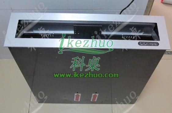2、在液晶屏的上升过程中,装饰面板自动打开,液晶屏直立伸出桌面并自动接通电源,自动仰成一定角度;