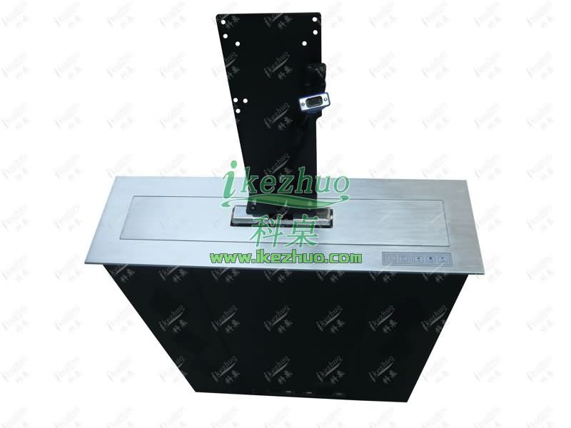 2、在液晶屏的上升过程中,装饰面板自动打开,液晶屏直立伸出桌面并自动接通电源,自动仰成一定角度;