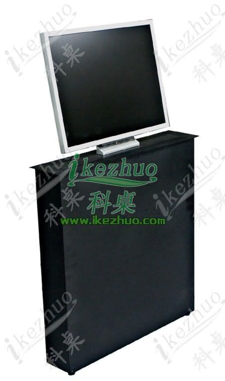 2、在液晶屏的上升过程中,装饰面板自动打开,液晶屏直立伸出桌面并自动接通电源,自动仰成一定角度;